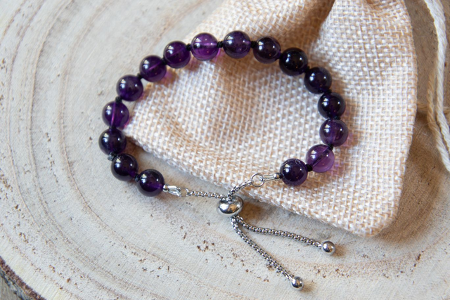 L’améthyste, pierre de sagesse et d’humilité, apaise les émotions, purifie l’énergie, stimule la créativité, l’intuition et la concentration, tout en favorisant le calme, la relaxation, et l’harmonisation physique, mentale et spirituelle.